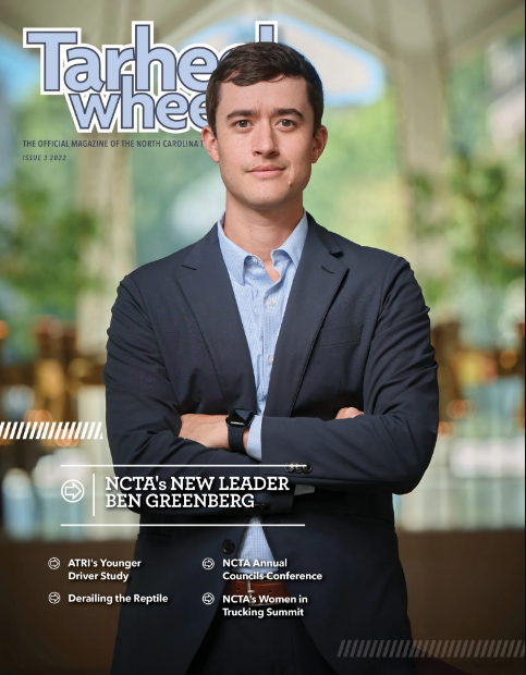 En route to you very soon and arriving next week… The newest edition of North Carolina Trucking Association’s statewide magazine, Tarheel Wheels! Here’s a peek at the cover: Introducing NCTA’s new president and CEO, Ben Greenberg!